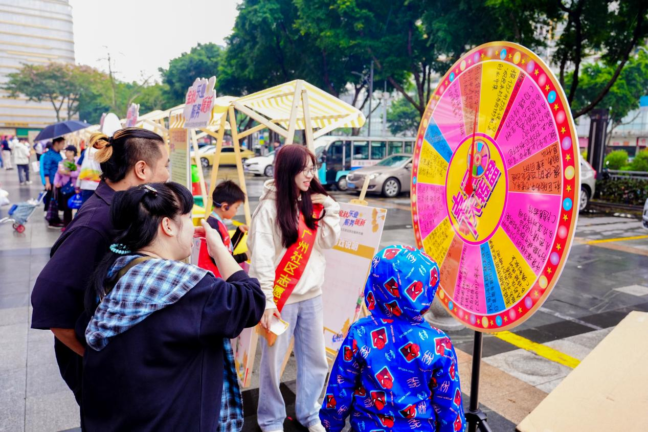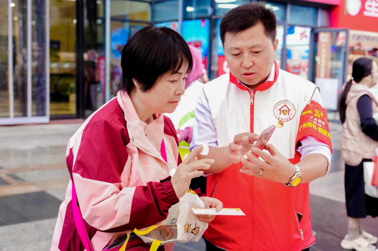 活动现场秩序井然,气氛热烈。居民们或围在便民服务摊位前专注咨询,仔细记录政策要点;或全家齐上阵,在游戏摊位前欢声笑语,挑战通关。身穿马甲的志愿者和街道工作人员穿梭其中,提供耐心细致的引导与解答。一幕幕温馨的互动场景,不仅切实解决了群众的实际疑问,更勾勒出社区共建共治共享的和谐画面。