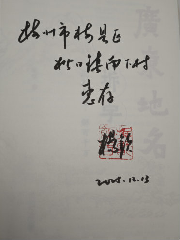 2025年12月13日,民建广东省委人口资源环境委员会副主任、广东省乡村振兴产业联合会专家委员会专家、佛山市古镇古村活化促进会创会副会长、佛山大学兼职教授、《广东地名拆字诗:说县镇村,解百千万》作者杨钦,深入梅州市梅县区松口镇南下村开展调研,并向该村捐赠其著作。