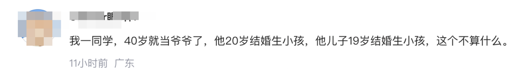 也有网友认为80后当爷爷很正常:“别说,45岁真有当爷爷的”“80年的,孙子两岁半了”。