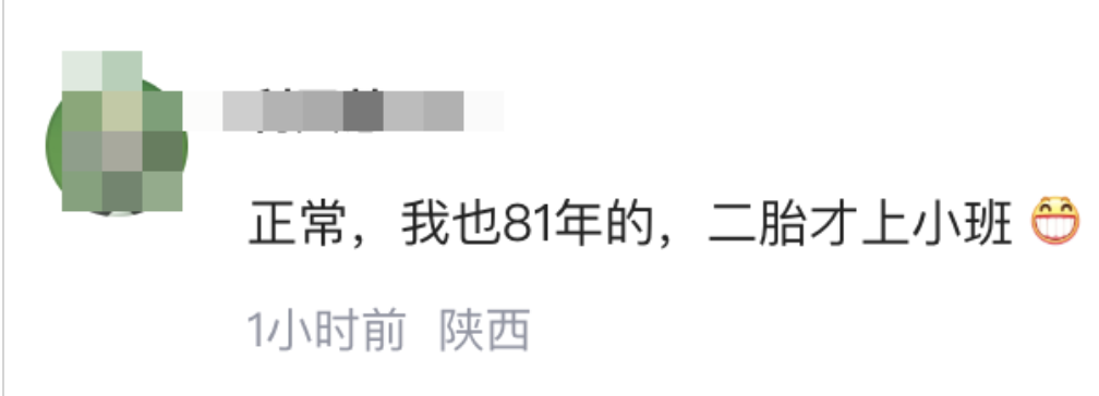 不少网友们留言回应。有网友分享自己的类似经历,表示“正常,我也81年的,二胎才小班”。