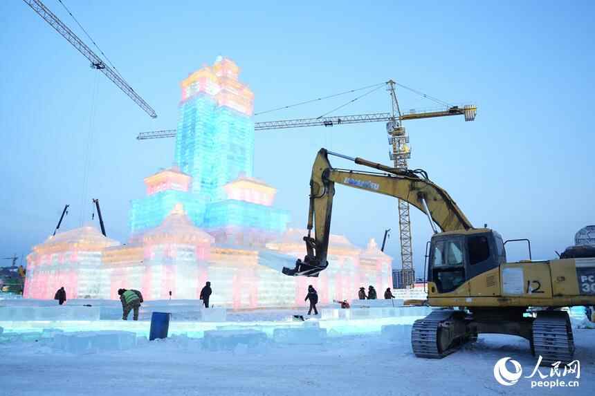 人民网长春12月14日电 (记者李洋)近日,以“冰雪福耀中华・民族大团结”为主题的长春冰雪新天地建设正酣,在156万平方米的园区内,超5000名工人正在加紧建设百余组巨型冰雪雕塑。