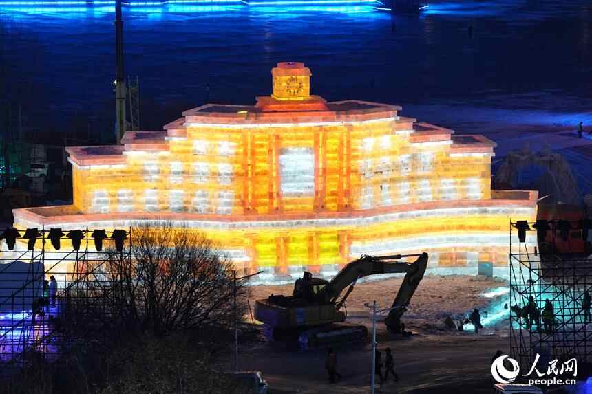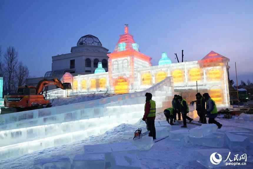 建设中的长春火车站冰建。人民网记者 李洋摄
