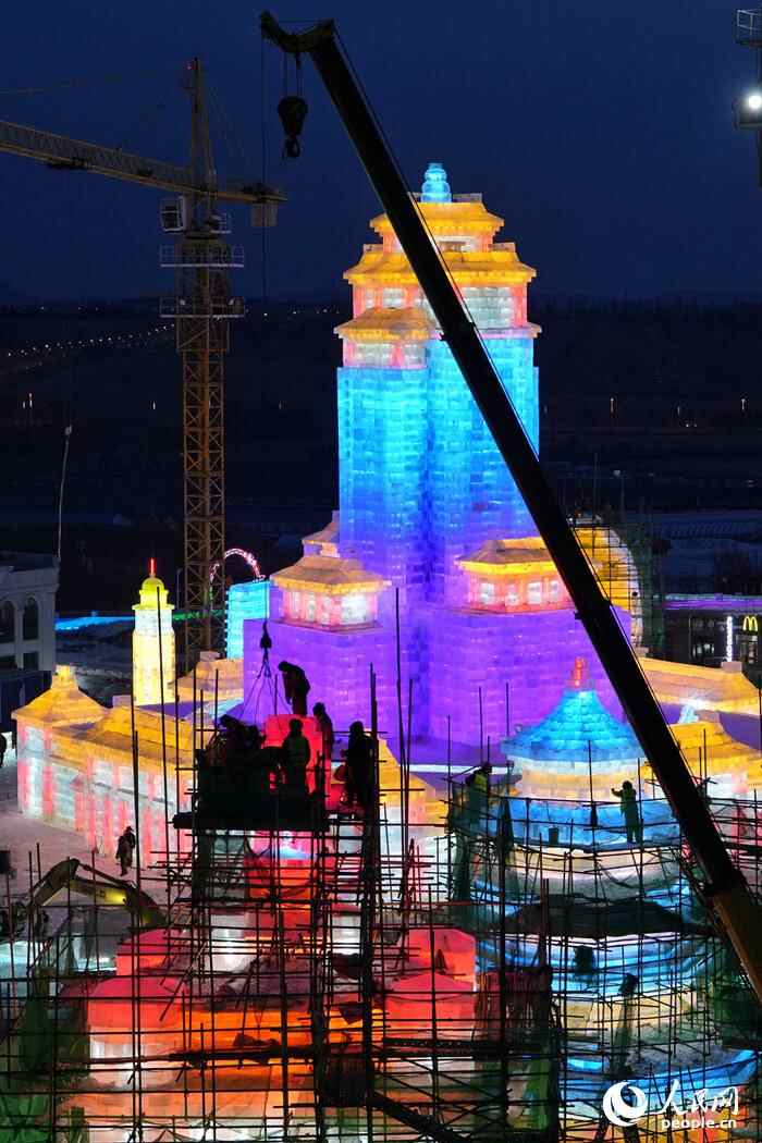 人民网长春12月14日电 (记者李洋)近日,以“冰雪福耀中华・民族大团结”为主题的长春冰雪新天地建设正酣,在156万平方米的园区内,超5000名工人正在加紧建设百余组巨型冰雪雕塑。