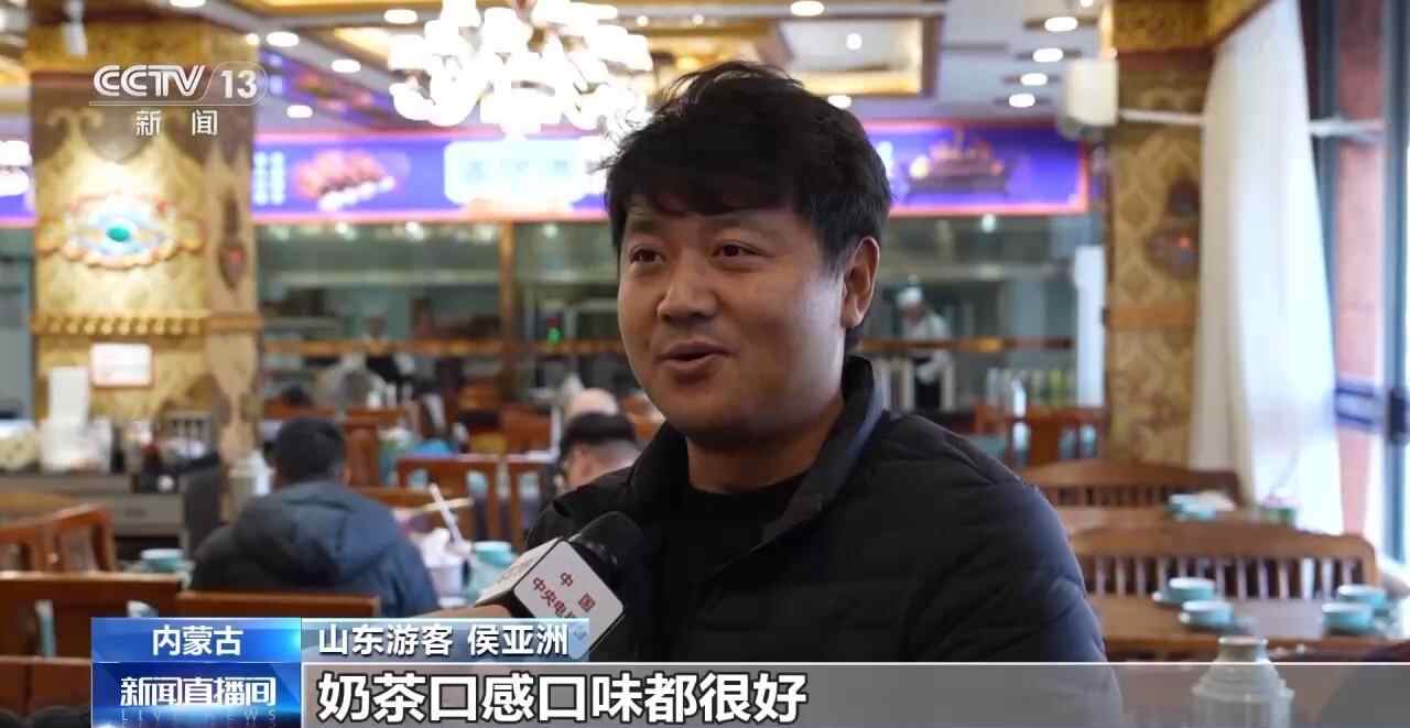 山东游客 侯亚洲:奶茶口感口味都很好,天气很冷,在这里边能尝到这么热乎,还这么有人情味的奶茶,包括服务这么好,感觉更暖了。