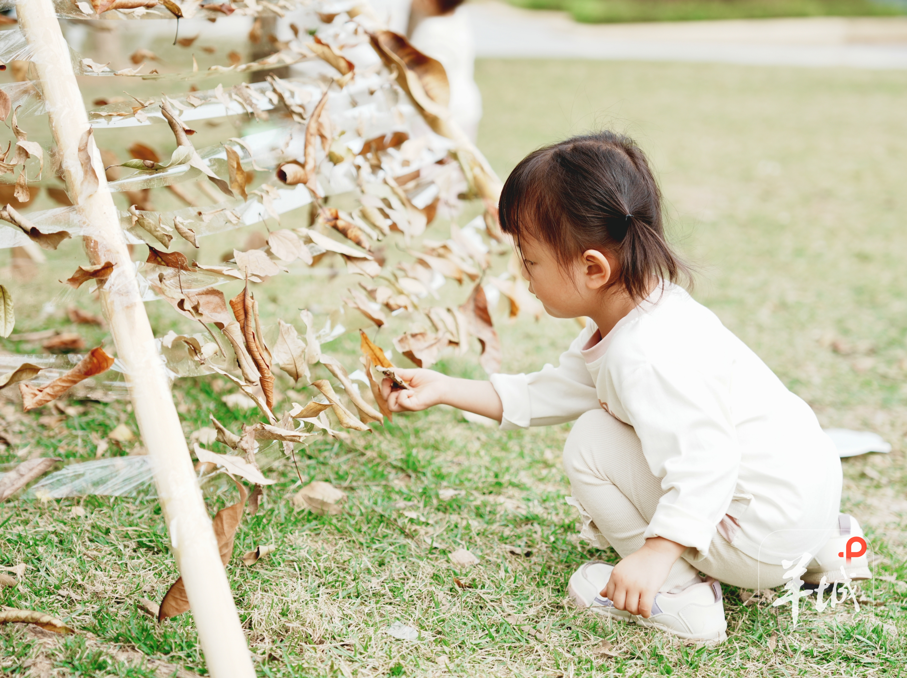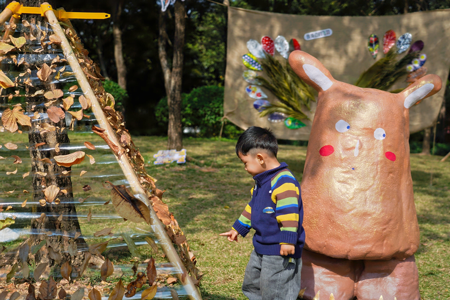 在广州冬日温润的阳光里,我看到一个约莫四五岁的小女孩蹲在地上,将一片金黄的树叶,小心翼翼地贴回自然互动装置缺失的位置上。