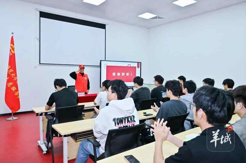 服务中心的党建室中,一场以“传承红色基因,把青春献给祖国”为主题的红色宣讲活动同步举行。天河区“红棉花开”军休干部志愿服务队的老首长正声情并茂地向同学们讲述他当年从军的烽火岁月。他的讲述,激励着现场的大学生们以英雄为榜样,积极参军报效祖国,在成长中扛起“强国有我”的时代责任。