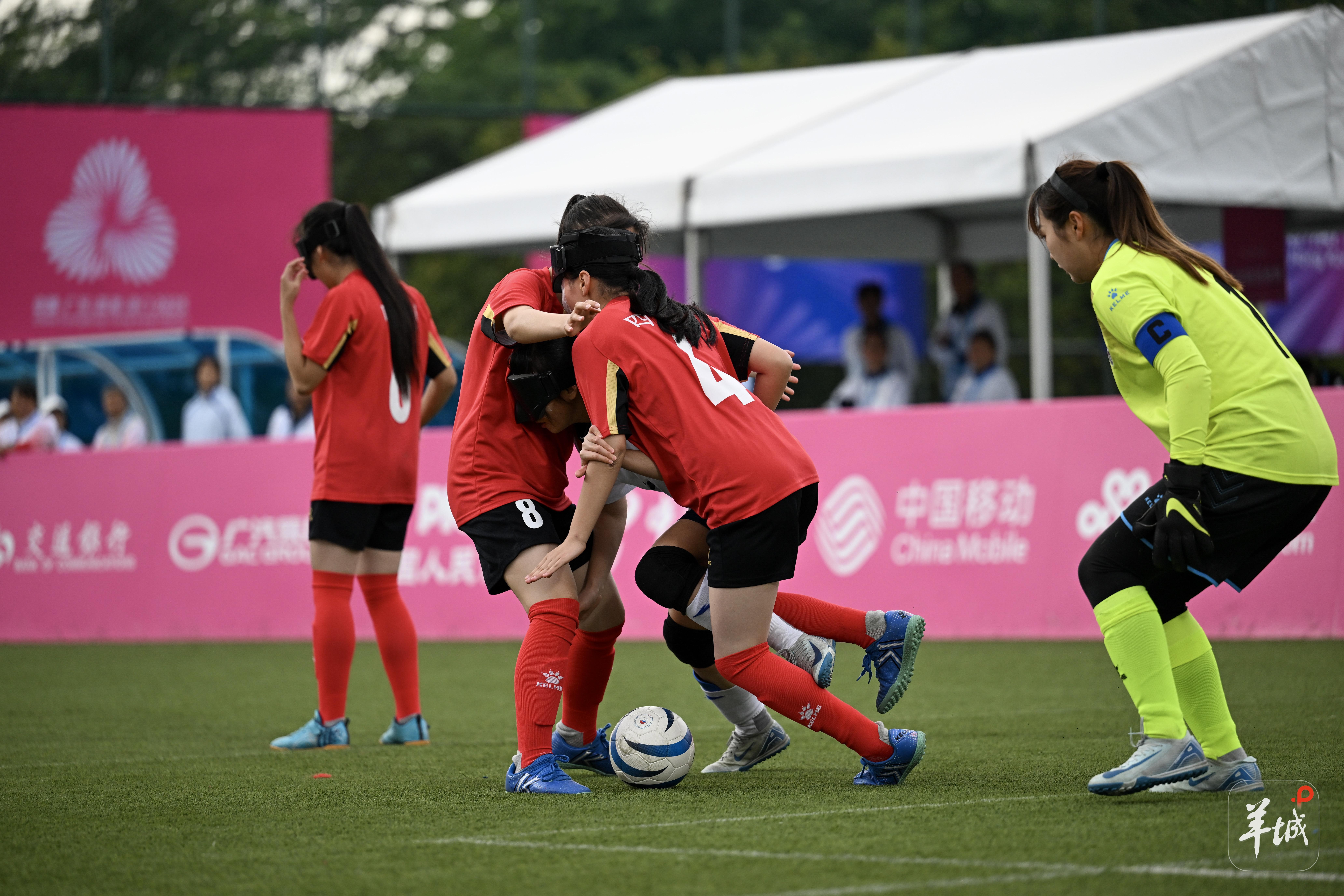 “这次很开心在家门口比赛!”广东女子盲人足球一队守门员梁俏琳是一位健全人,来自广州番禺,从高中开始就踢足球,目前在广州读大学。她在2024年4月开始加入广东女子盲人足球队,与盲人女足队员们一同生活、训练。