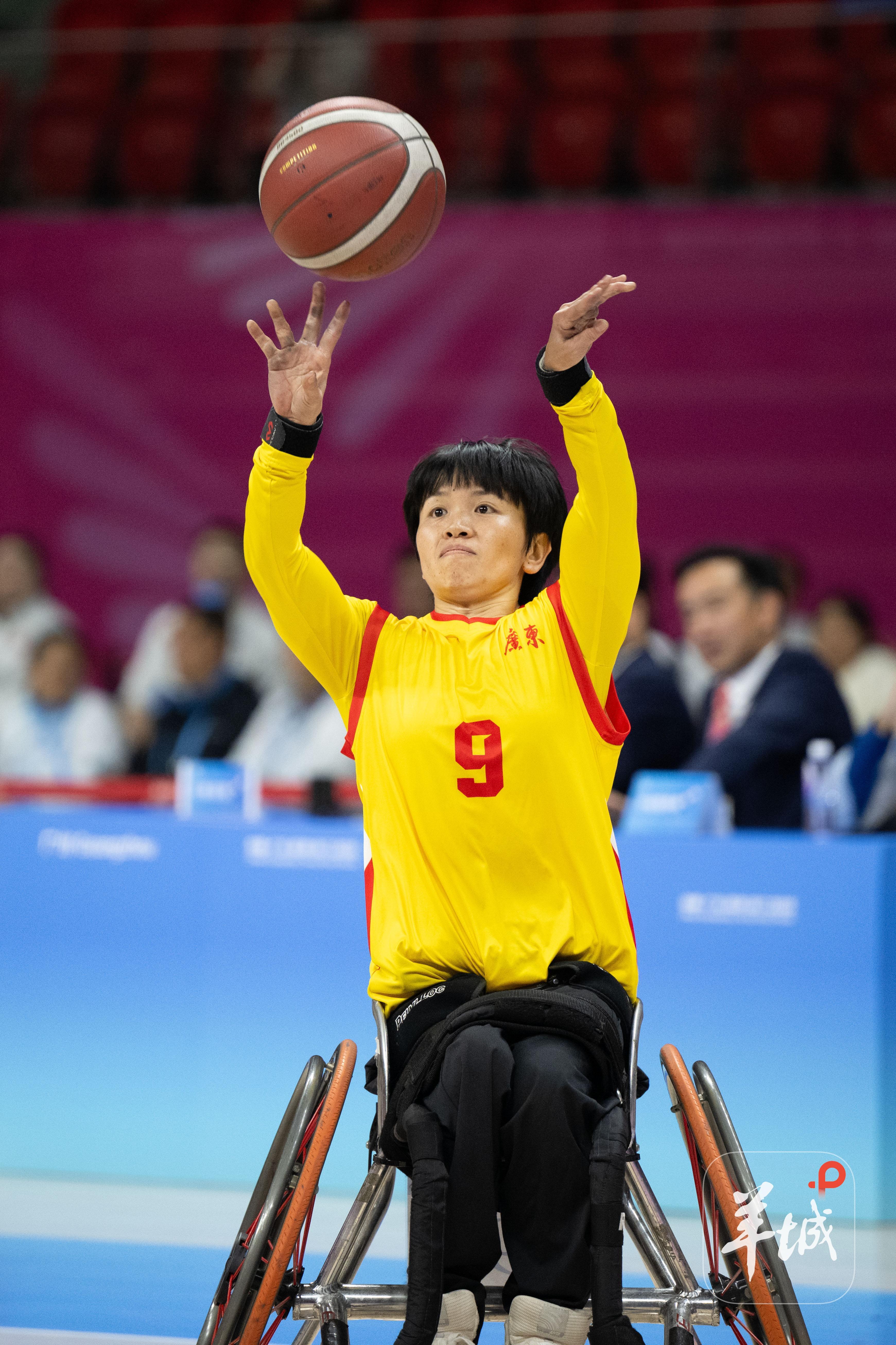 随后,广东队队员持续展现精湛的轮椅操控技术与高效的战术执行力,灵活走位撕开对手防线,精准挡拆创造优质出手空间,每一次推进、转身与卡位都干净利落,得分势头持续攀升。半场战罢,广东队已建立36:12的绝对领先优势,其中队长林穗玲状态神勇,单半场便贡献12分,成为球队进攻核心。