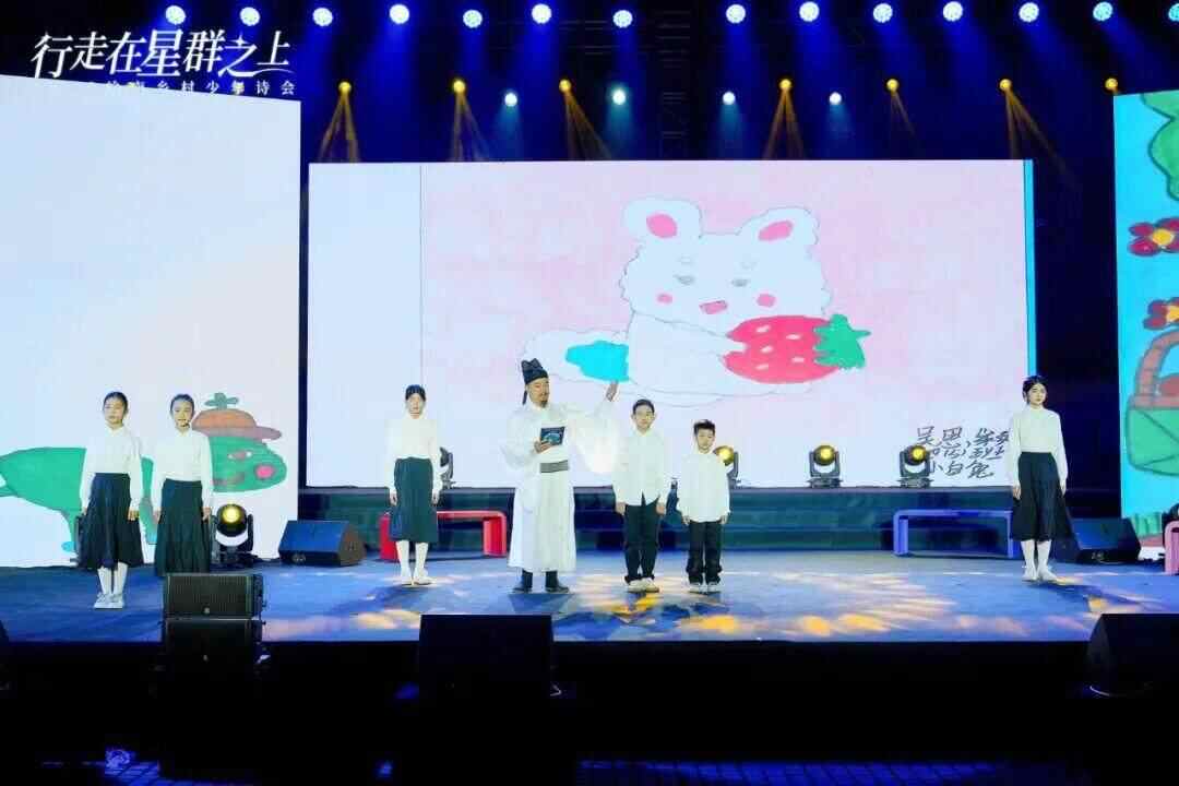 “翁城李白”朱海文和翁城小诗人登台,用稚嫩却坚定的声音朗诵翁城孩子的诗。“石头是闪闪的星星”“长上翅膀飞上蓝天”……温暖浪漫的诗句,像清泉般流淌进观众心底。