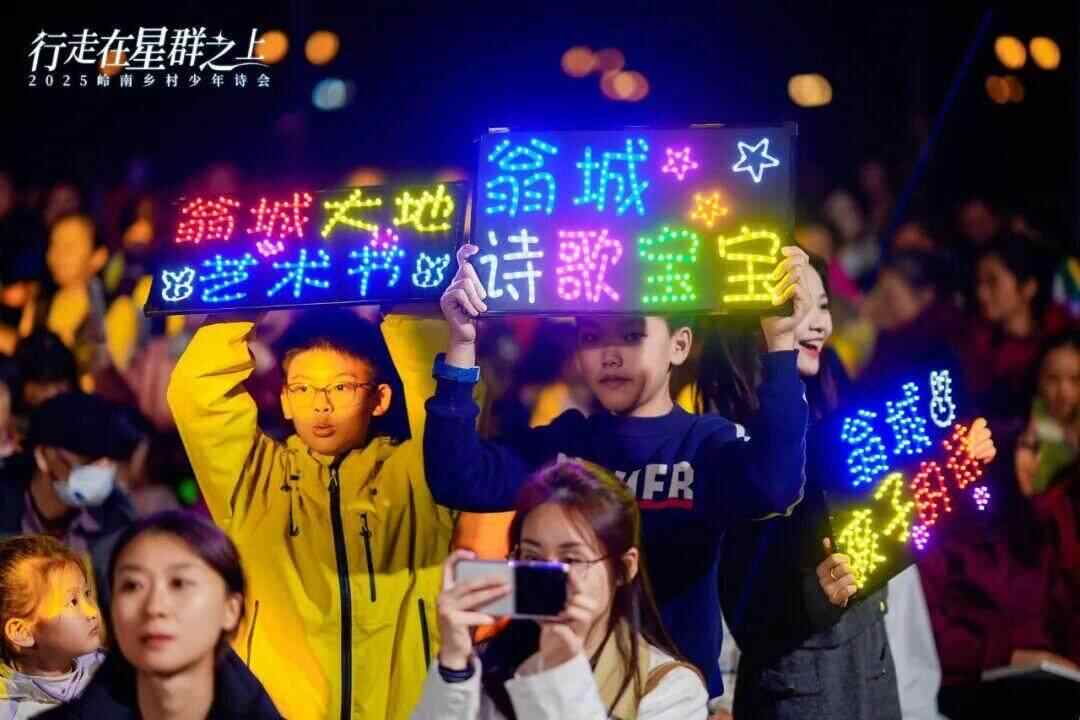 岭南冬日的星光洒满翁源翁城的田野,乡村少年的诗句化作穿越山海的翅膀。12月6日晚,由广东省精神文明建设办公室指导,羊城晚报报业集团(羊城晚报社)主办,韶关市文联、翁源县委宣传部、翁城镇人民政府、羊城晚报艺术研究院、羊城晚报数字媒体公司承办的“行走在星群之上”——2025岭南乡村少年诗会,在韶关市翁源县翁城镇文化广场举办。这场诗会活动,汇聚了城乡力量与多元艺术,为乡村文化振兴增添了鲜活而扎实的实践注脚。