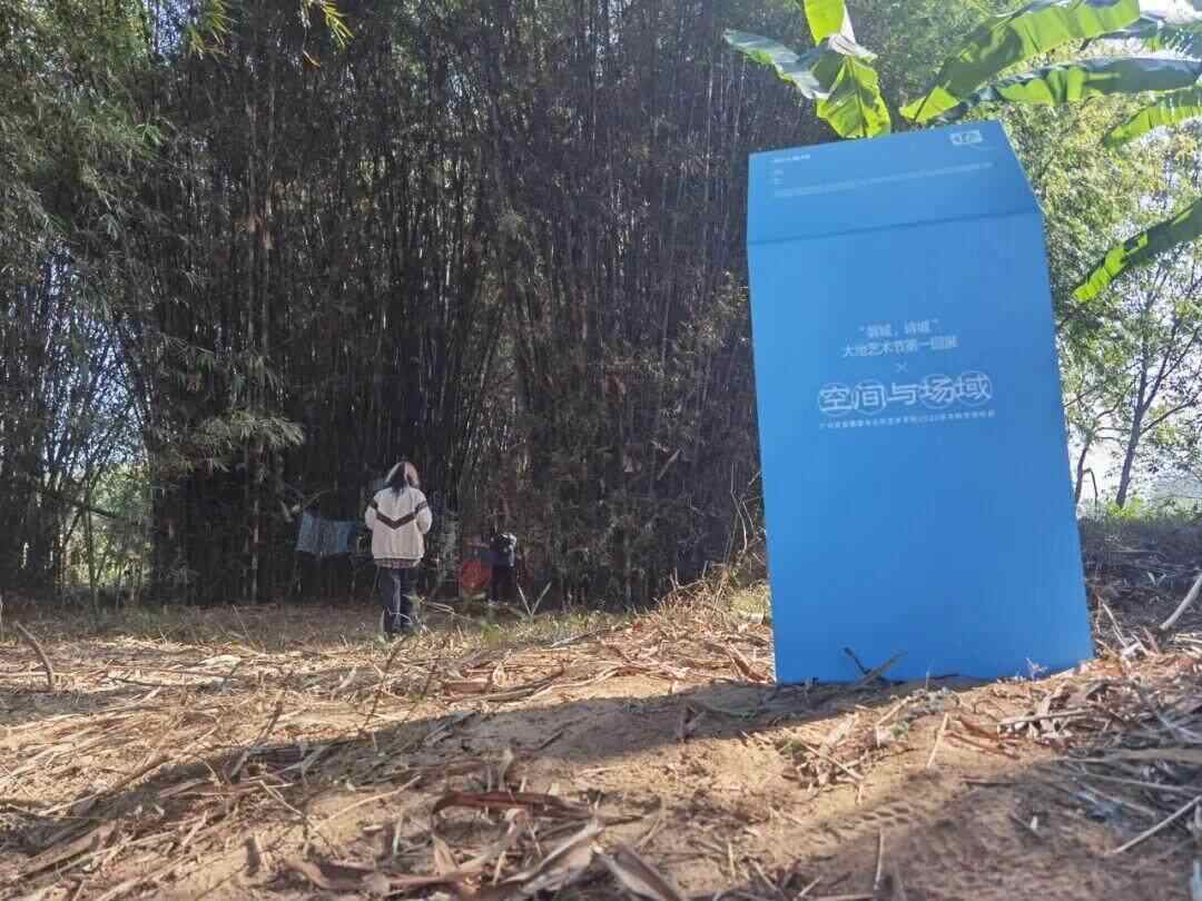 上午忙坏了。文慧把蓝色不锈钢展标挂在肩头,跟着我和德灏、阿聪到处走。要把所有大地艺术节作品一一确定展标位置。不锈钢展标很高级。当然,我们的作品也有分量。吴德灏说,所有作品都是在翁城创作的。