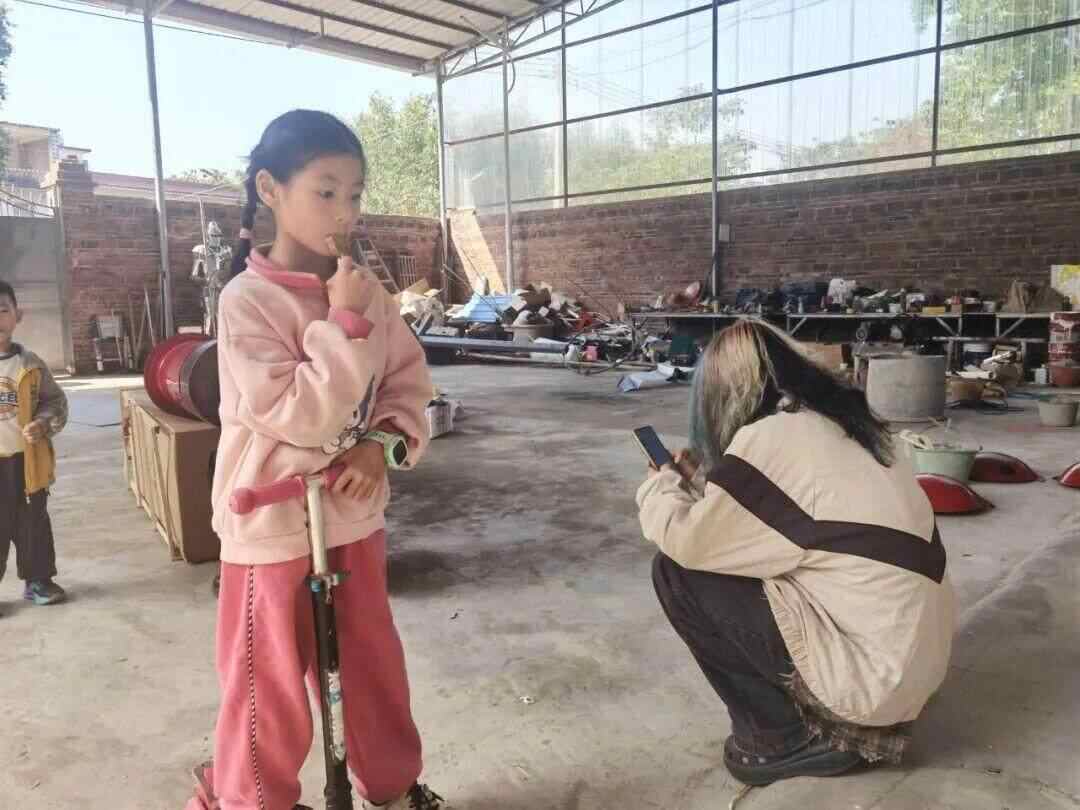 中午到阿聪家。文慧跟他女儿小凤仪打招呼,小姑娘从二楼跑到一楼,一开始有点害羞,出来后问文慧:玉洁有没有来?她说她十分想念玉洁姐姐。给玉洁发了图片去。玉洁也很感动,说有空时会跟他爸爸通过视频通话来见面。同学们在翁城干活十二天,和当地一些村民建立了深厚感情。创作活动结束,要分别了,大家依依不舍。小凤仪给文慧画了很多小卡片,有留言。看了很感动。