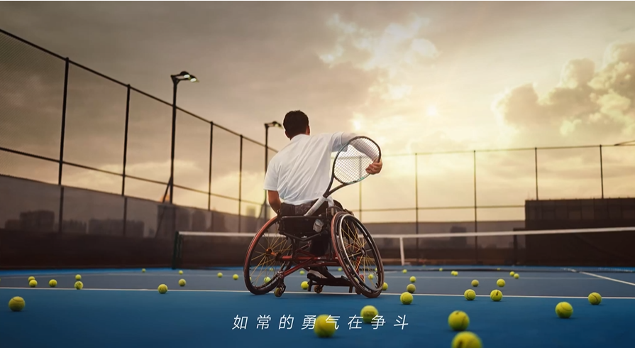 大家听到了——铿锵有力。当唱到“就算是等候 如常的勇气在争斗”,MV闪过残疾人运动员独臂泳动、单脚起跑,以及坐在轮椅上挥动球拍、投掷篮球的画面,一种坚毅向前的感觉扑面而来。紧接着,粤语歌声响起:“锐志极坚决 放弃了回眸”。