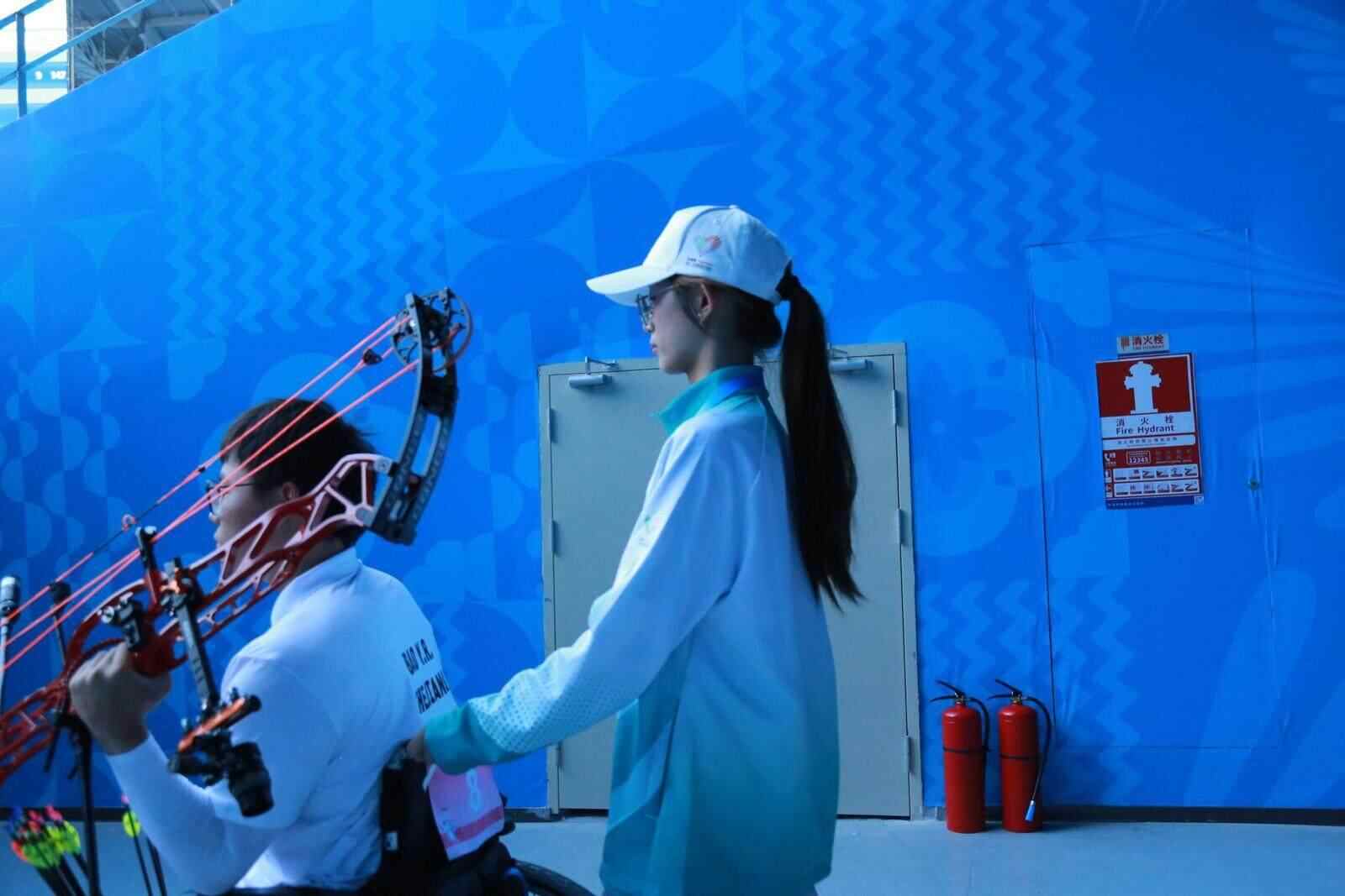 对于初次接触大型赛会或助残服务的志愿者而言,在残特奥会的服务首先是一次技能与心态的考验。担任深圳赛区射箭项目竞赛处志愿者组长的方瑶,第一次面临的技能考验就是如何在草地上推轮椅:“我原来在平地上训练过,但在正式比赛时需要从草地推到平地上,我发现还是很难的。”