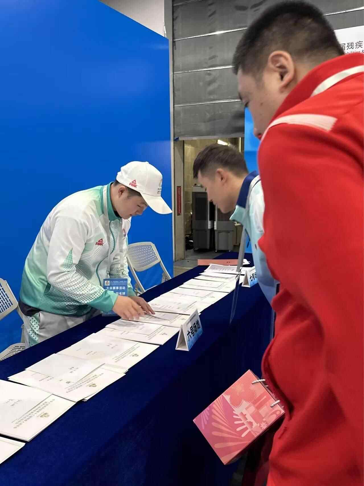 吴智将这份经验,毫无保留地传递给了“萌新志愿者”朱晴晴。两人一同在硬地滚球项目中服务,朱晴晴与吴智分别在检录处与竞赛服务这两处岗位。赛前,吴智与朱晴晴一起熟悉场地与流程;比赛时,他们发展出一套独特的“协同语言”。当面对个别有书写障碍的运动员需要签名确认比赛结果时,身处竞赛服务区的吴智只需一个眼神或手势,在检录区的朱晴晴便心领神会,提前联系教练前来帮忙。而在检录时,她也会将运动员表现出的紧张或亢奋状态提前告知吴智,让他在竞赛服务中能更好对接。在朱晴晴心中,这是保障赛事顺利进行的默契:“这样教学相长、协同发力的氛围,让我更有力量,也更能够尽力确保赛事的零纰漏。”