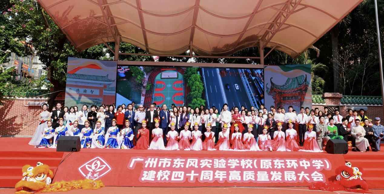 金羊网讯 记者李芷涵报道:“让我倍感荣幸的是,38年后,我的女儿也毅然选择了我的母校。”作为广州市东风实验学校(原东环中学)的首届毕业生、优秀校友代表,王挺深情感念母校的悉心栽培,也对母校未来的发展致以美好祝愿,而女儿的择校选择,更印证了他对母校始终不变的信赖与期许。12月6日,广州市东风实验学校运动场上暖意融融,全校师生、历届校友代表与各界嘉宾齐聚一堂,共同参加学校建校四十周年高质量发展大会,共同回顾学校四十载栉风沐雨的发展历程,展望高质量发展的崭新未来。