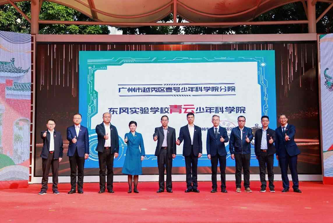 大会现场亮点纷呈,其中青云少年科学院的启用仪式尤为引人注目,成为学校聚焦科创教育、培育创新人才的重要里程碑。广东省教育研究院原党委书记、院长汤贞敏先生、广州市教育局市管一级调研员李长庚先生、越秀区黄花岗街道党工委书记余昭辉女士、广州市教育局宣传与思想政治教育处副处长张恩暐先生、广州市教育局国际交流合作处二级调研员 黄冕先生等领导嘉宾共同点亮了东风实验科技的火种。