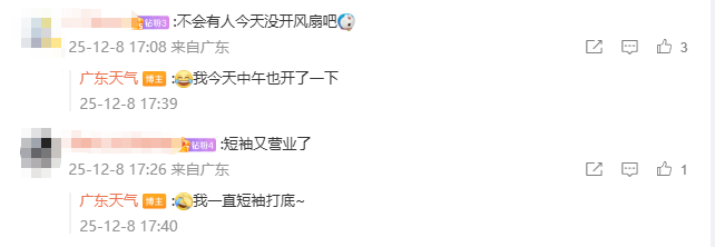 昨日下午3点,中央气象台的气温排行榜上,前10名就被广东承包了6个,明明是冬天却恍如初夏!不少网友表示,自己还小小地开了一下风扇,又穿上了短袖~