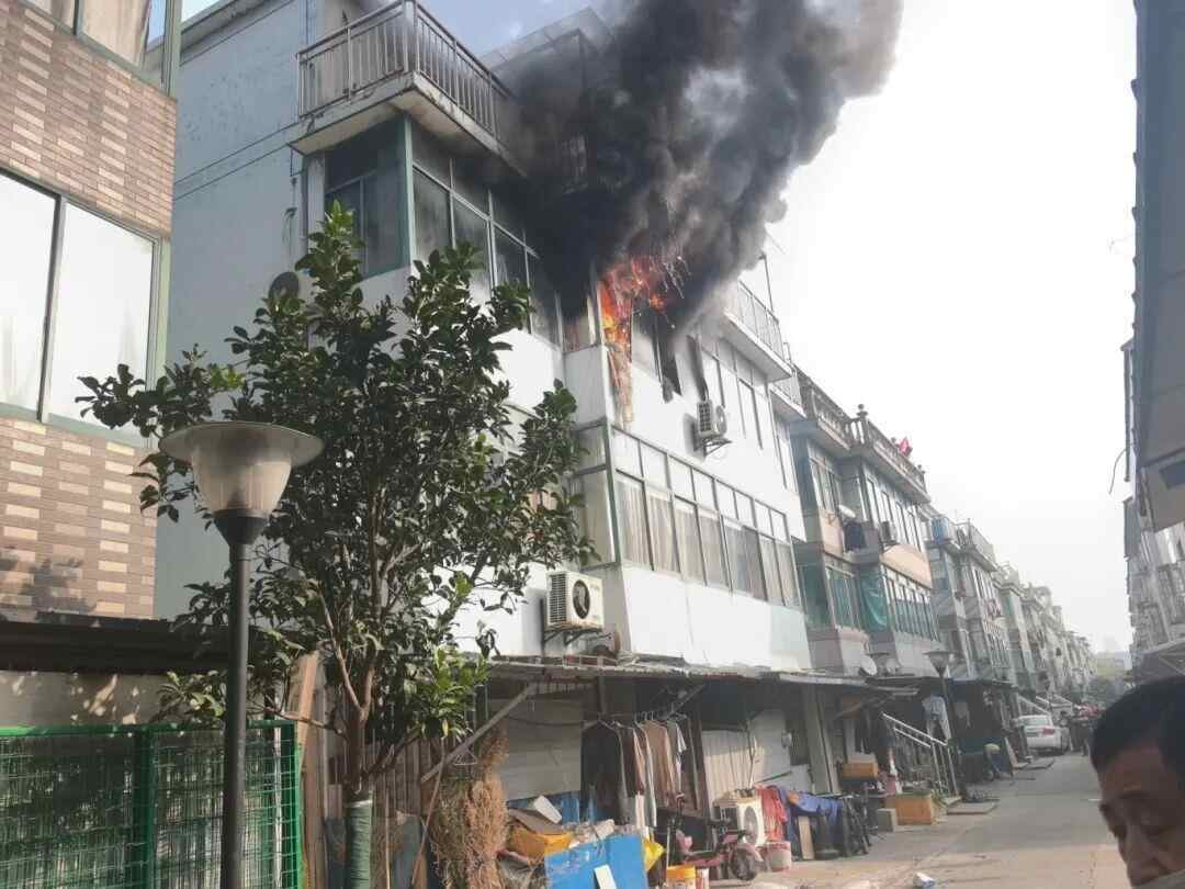 12月1日,浙江湖州一出租房发生火灾,火势猛烈,窗外冒出阵阵黑烟。
