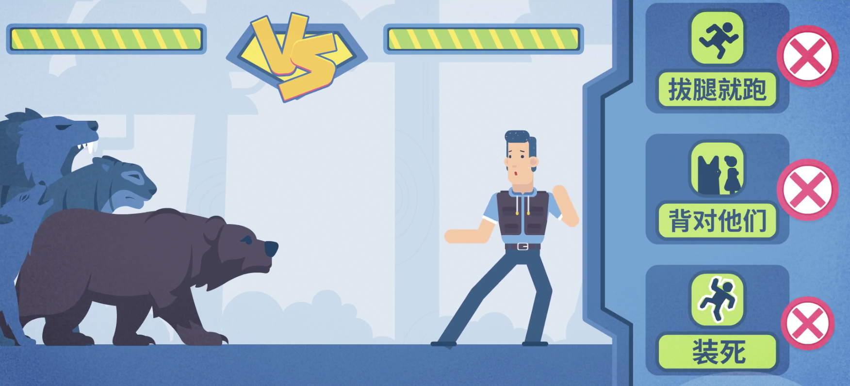 若扑来:挥舞衣物或背包干扰视线,攻击其眼睛、鼻子等脆弱部位。