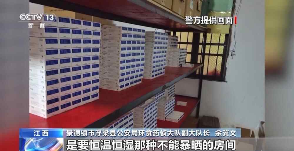 江西景德镇市浮梁县公安局环食药侦大队副大队长 余冀文:按照我们一般的要求,是要恒温恒湿那种不能暴晒的房间,它就是一个普通的民房搭了几层架子。他如果需要寄出去的,他就放在架子上,暂时不寄的药,他就跟堆仓库一样堆在那边,所以储存环境是比较恶劣的。