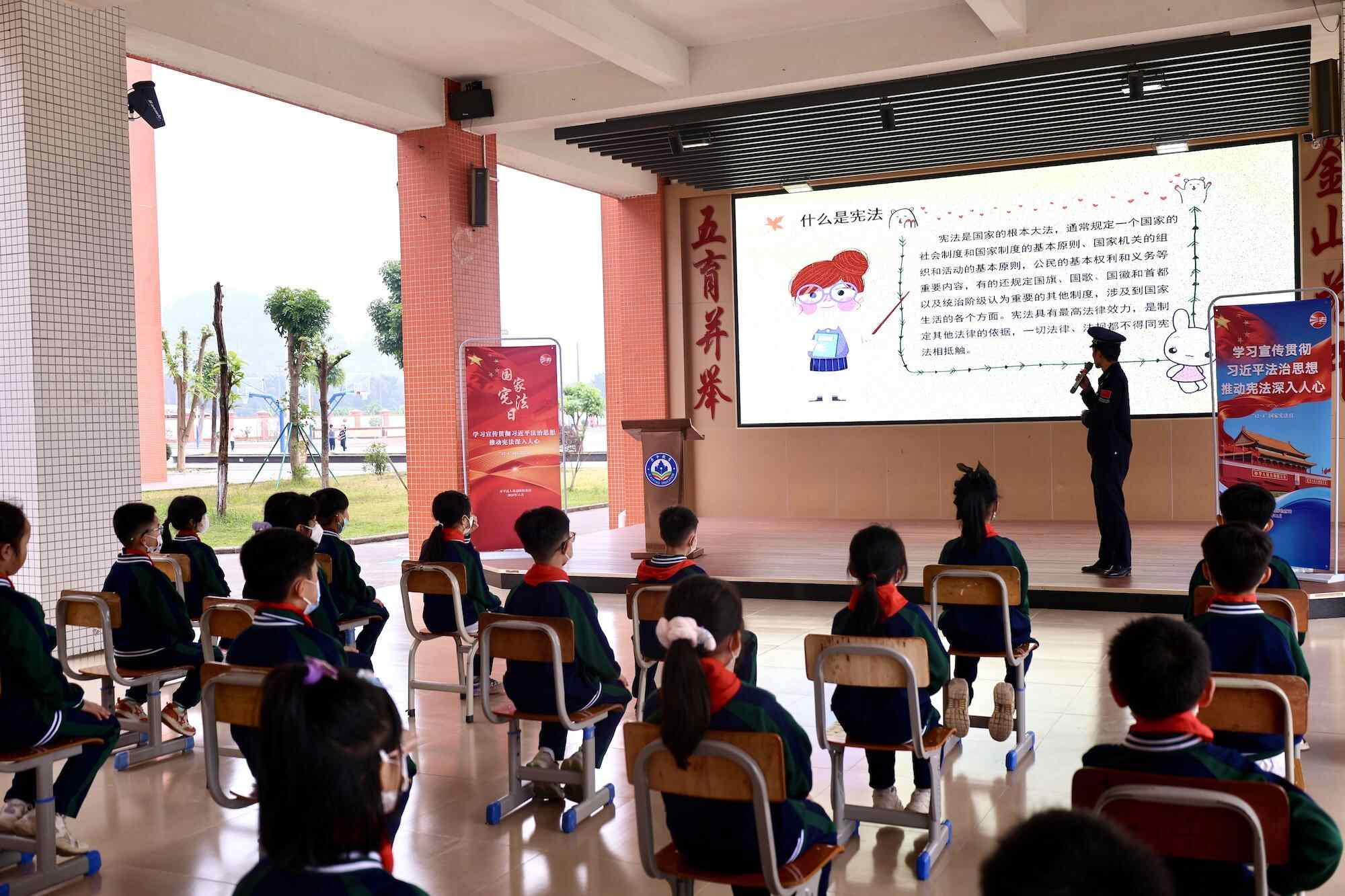 今年12月4日是我国第十二个“国家宪法日”。为进一步厚植青少年法治理念,引导未成年人树立宪法意识、增强法治观念,近日,珠海边检总站开平边检站组织民警走进开平市梁金山小学,开展“宪法小课堂”主题宣传活动,以生动鲜活的形式让宪法知识走进校园、浸润童心,鼓励同学们争当知法懂法、守法用法的宪法小卫士。