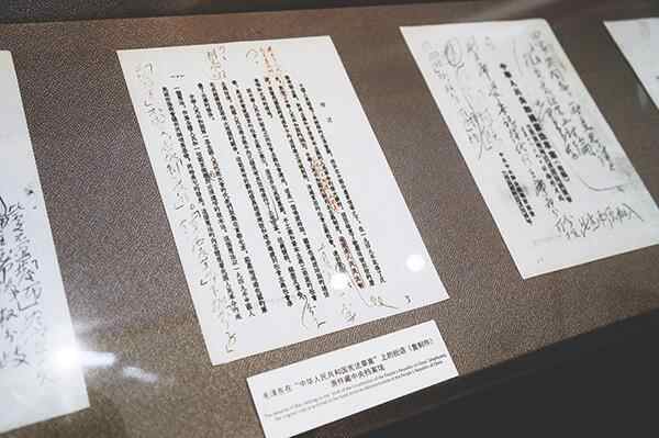 △“五四宪法”历史资料陈列馆展出的毛泽东批改宪法草案初稿的手稿。