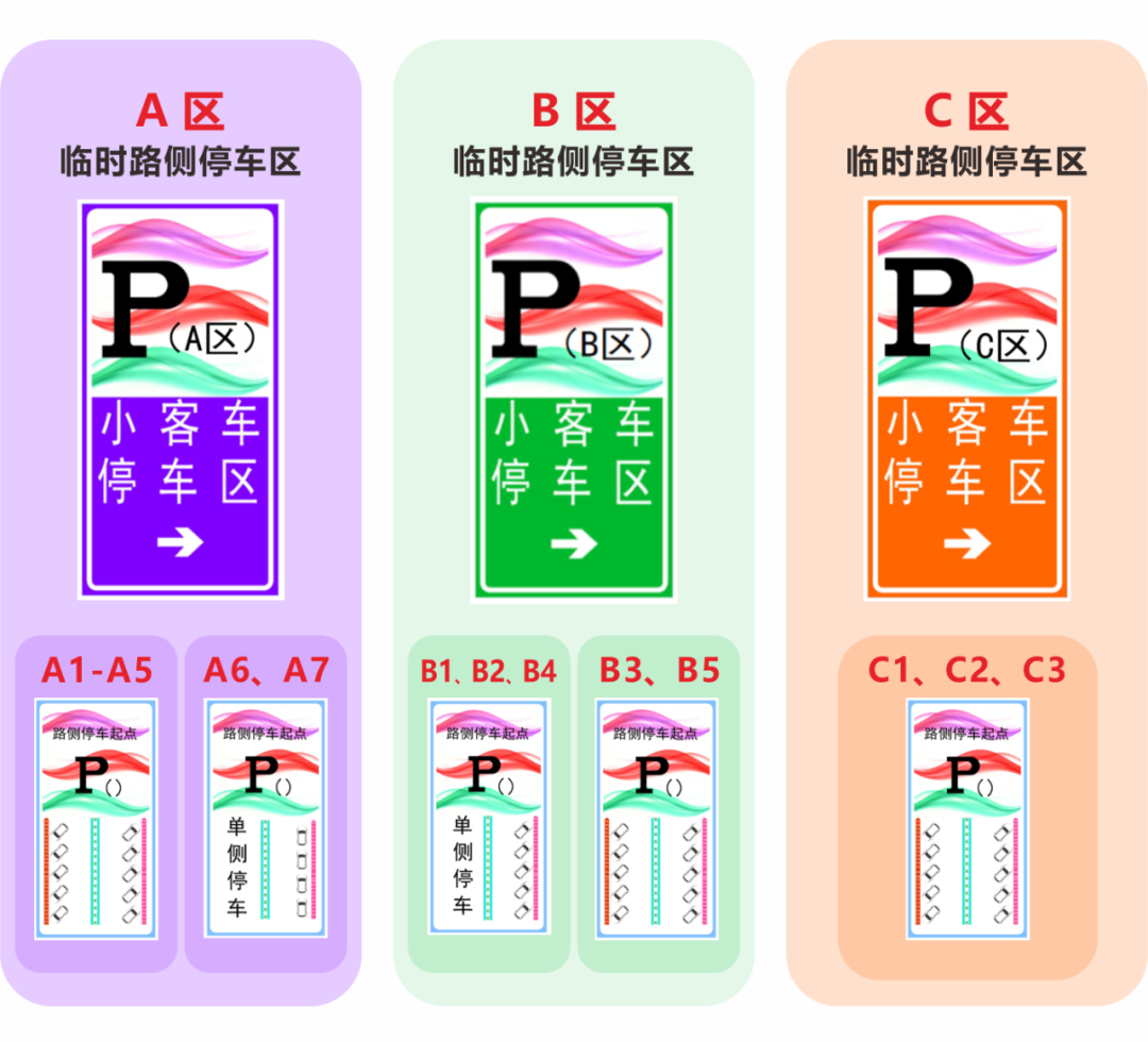 交警部门表示,将根据各停车场饱和情况,适时临时开放路侧停车区(分为A、B、C区)。观众需按现场指示牌及工作人员指引停放车辆。届时,主办方将安排免费摆渡车(分A线、BC线)往返于临时停车区与场馆附近。警方同时提供了电子停车指引以便观众查询。