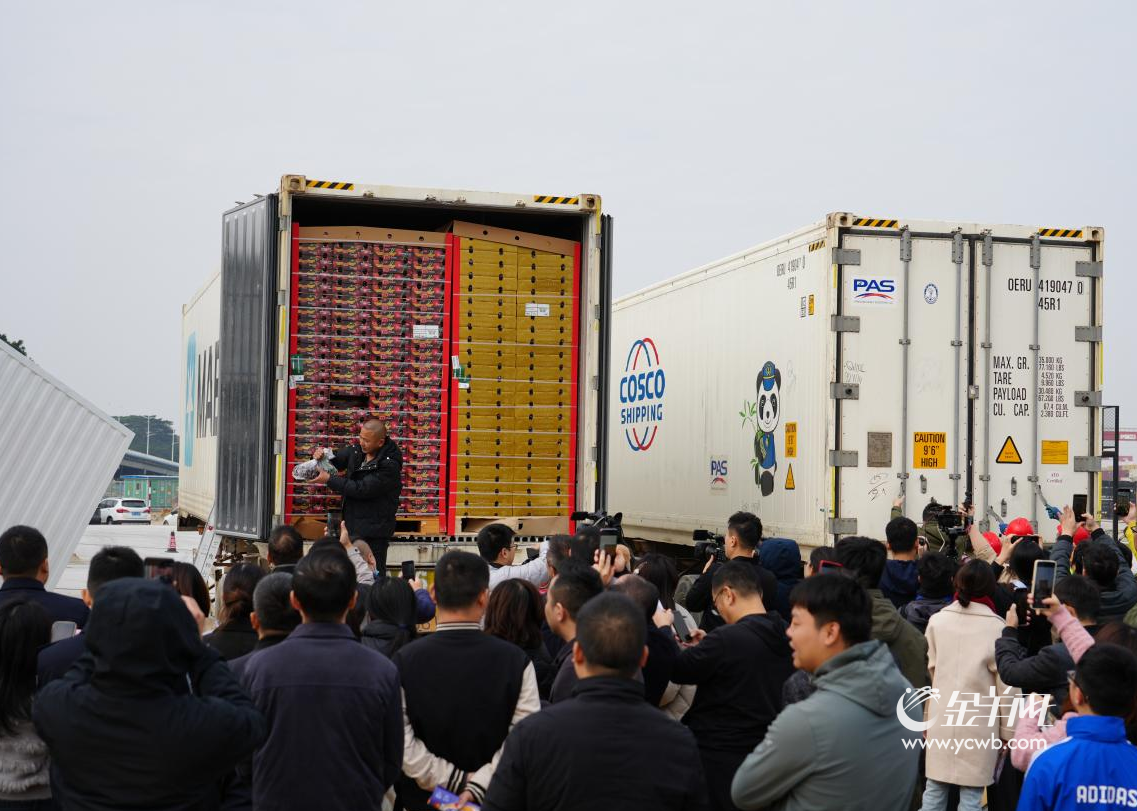 本次活动的核心环节是智利车厘子的“开柜即售”。羊城晚报记者了解到,这批车厘子从南沙港口码头卸柜后,将直接运送至集市货架,缩短了中间流通环节。现场将以开箱形式进行销售,确保产品从产地到消费者的透明度,旨在实现当日达、当日售。