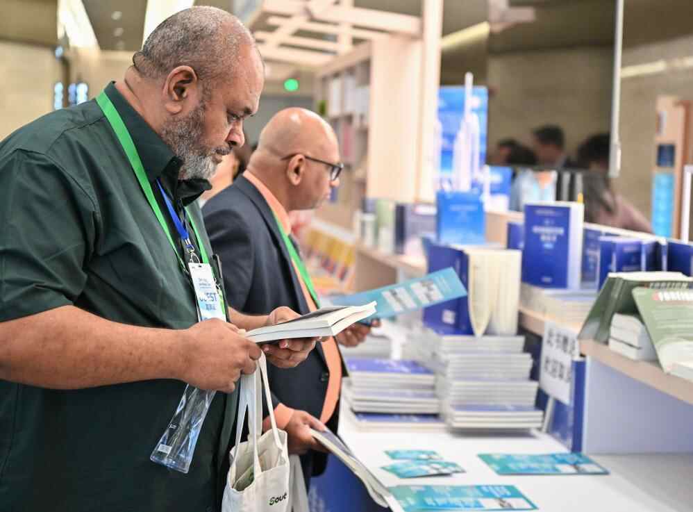 12月1日,参会人员在会场查看书籍。新华社记者 肖恩楠 摄