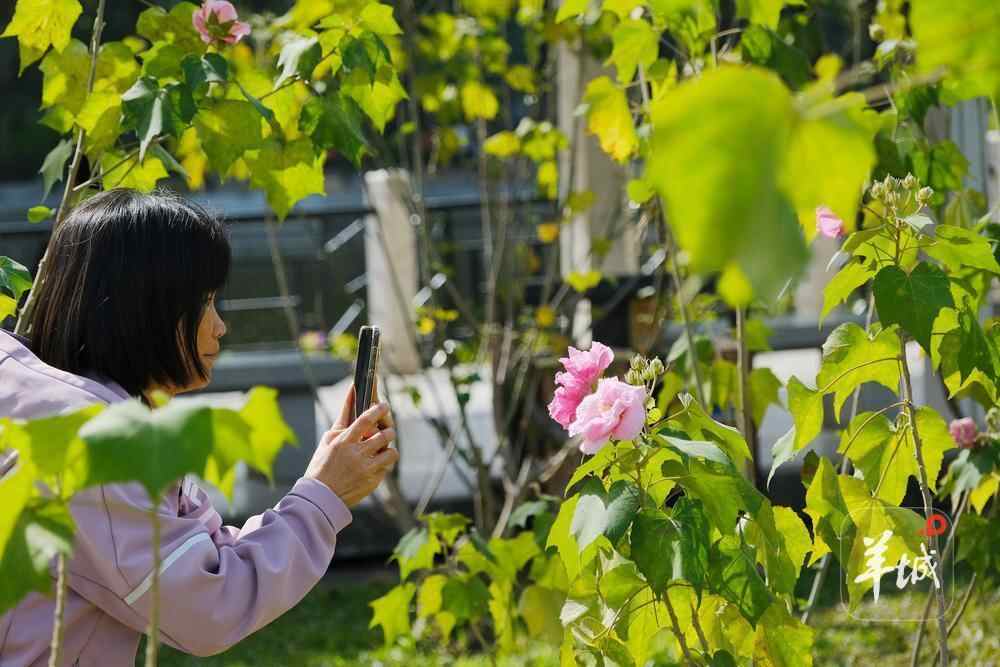 尽管冷空气来袭,花城的冬天依然色彩在线。近日,流花湖公园芙蓉洲的木芙蓉迎来盛花期。