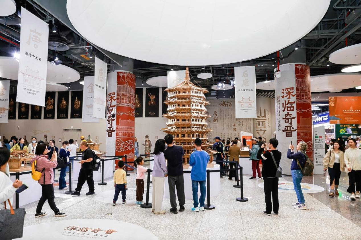 当高达3.3米的应县木塔模型矗立在繁华的深圳地铁站内,当古老的永乐宫壁画与数字时代的游客仅一米之隔,一场跨越时空与地域的文化对话已然开启。11月30日,“深临奇晋——山西文化巡展·深圳站”于深圳岗厦北地铁站核心商业区正式面向公众开放。本次展览创新性地利用国际化都市的交通枢纽空间,将山西浩如烟海的古建、壁画、彩塑与非遗产代表作,通过现代展陈语言进行浓缩与重构。