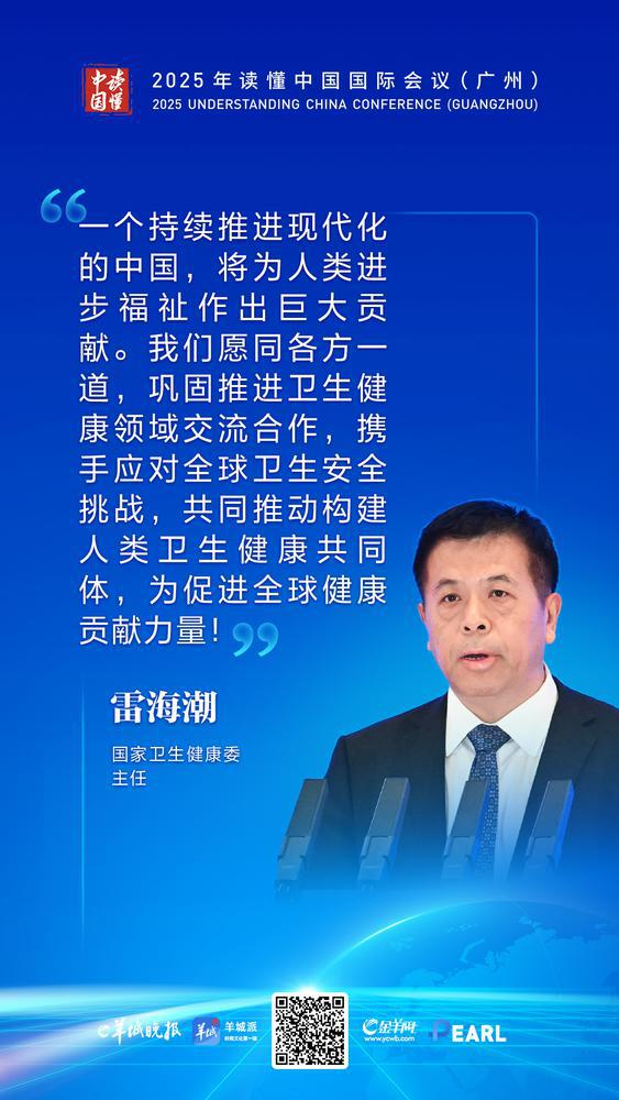 12月1日上午,2025年“读懂中国”国际会议在广州越秀国际会议中心举行开幕式。大会演讲环节,国家卫生健康委主任雷海潮表示:“我们尽己所能提升发展中国家卫生服务可及性。”