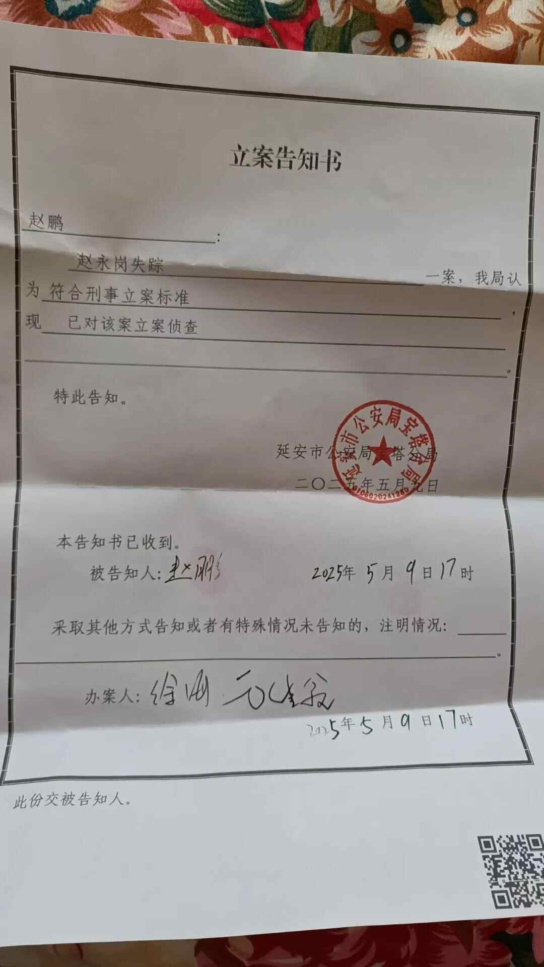 赵鹏发布的寻人启事。受访者供图