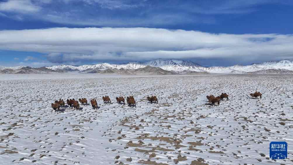 这是12月4日在甘肃省阿克塞哈萨克族自治县阿勒腾乡祁连山区拍摄的雪后景观(无人机照片)。