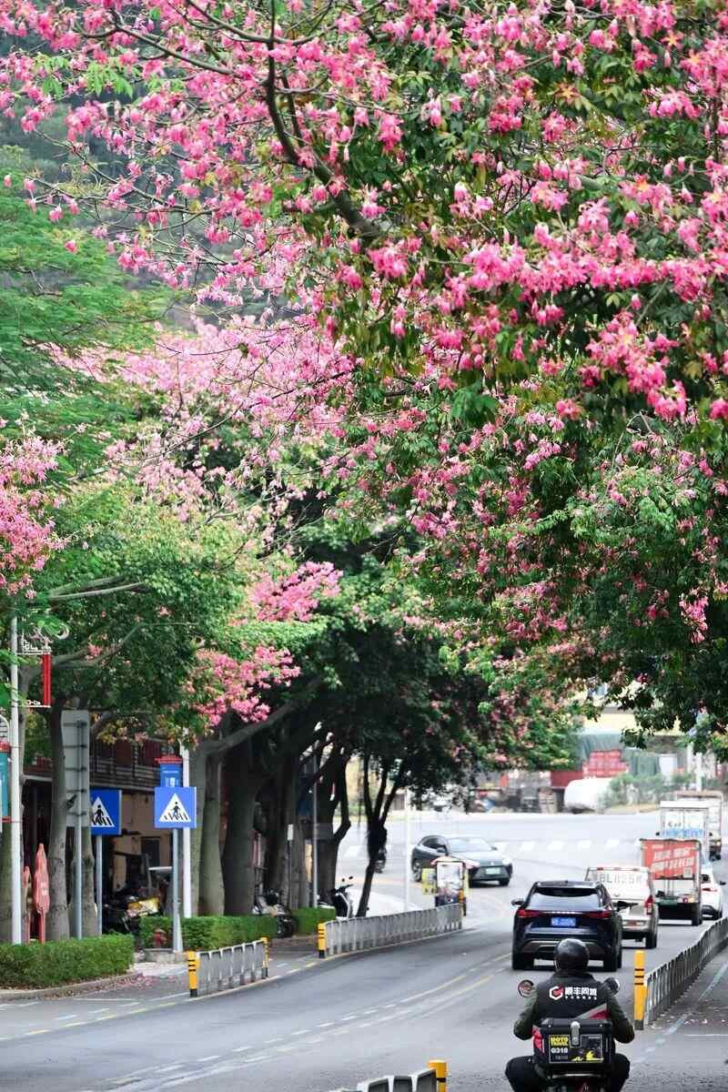 深圳市龙华区望辉路上,粉与白交织成“调色板”。