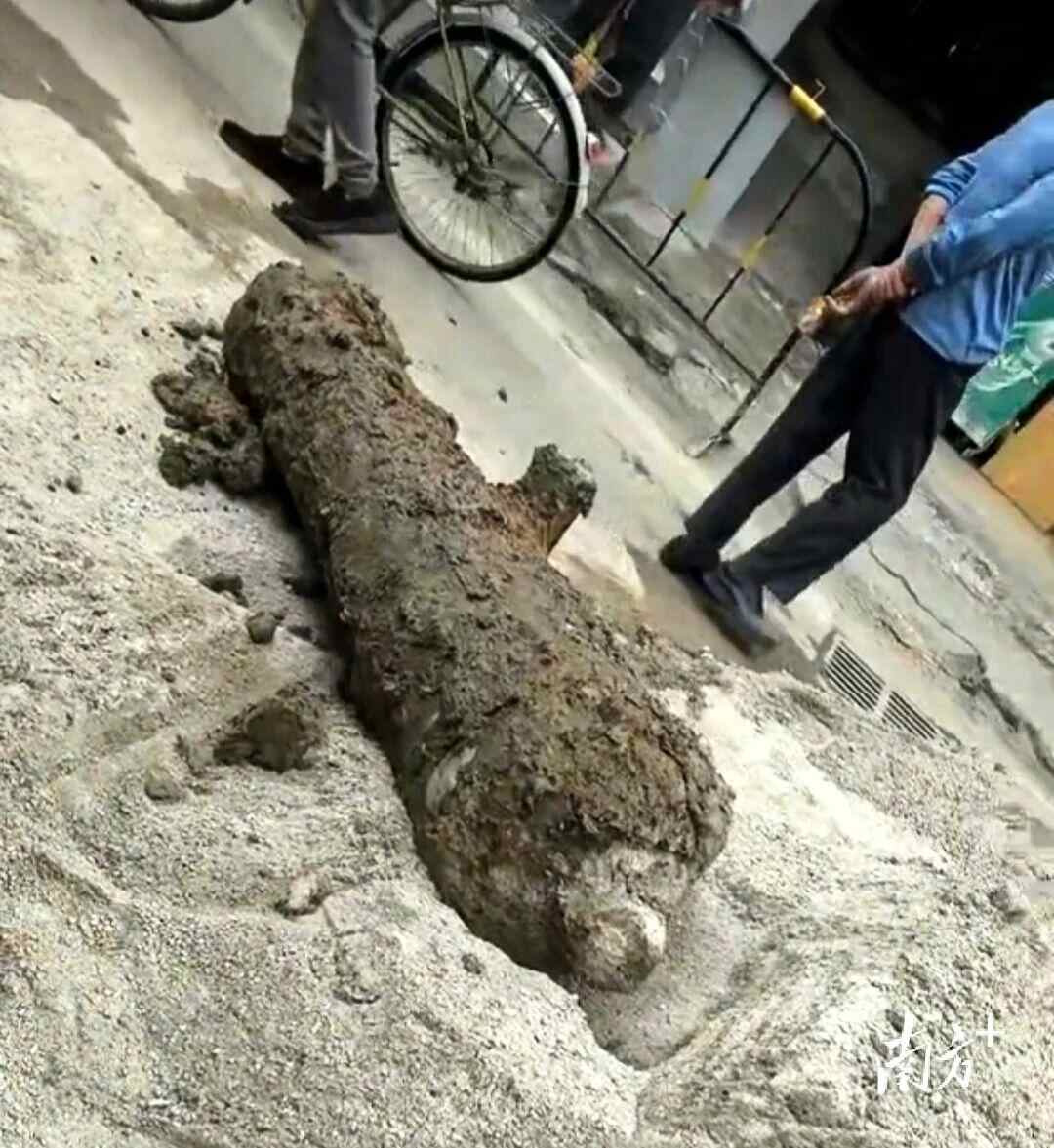 12月4日下午,茂名高州市老城区西关路雨污分流施工工地发掘出一门长约2米的疑似清代铁炮,目前已由高州市文广旅体局组织专业人员安全提取,并运抵高州市博物馆入库保护,后续将开展清理、研究与展示工作。