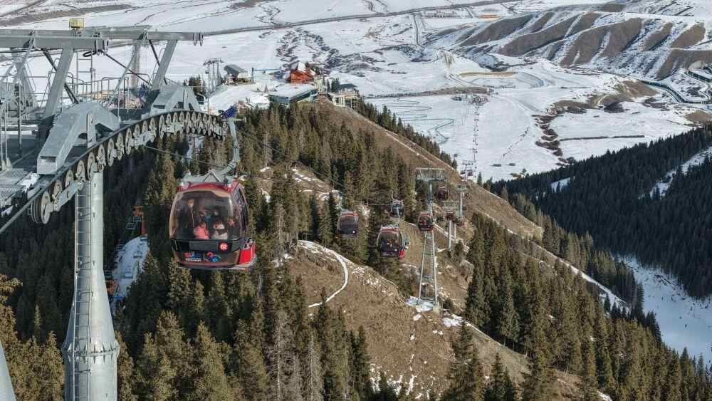 12月3日,游客乘坐缆车前往山顶观光。新华社记者 张啸诚 摄