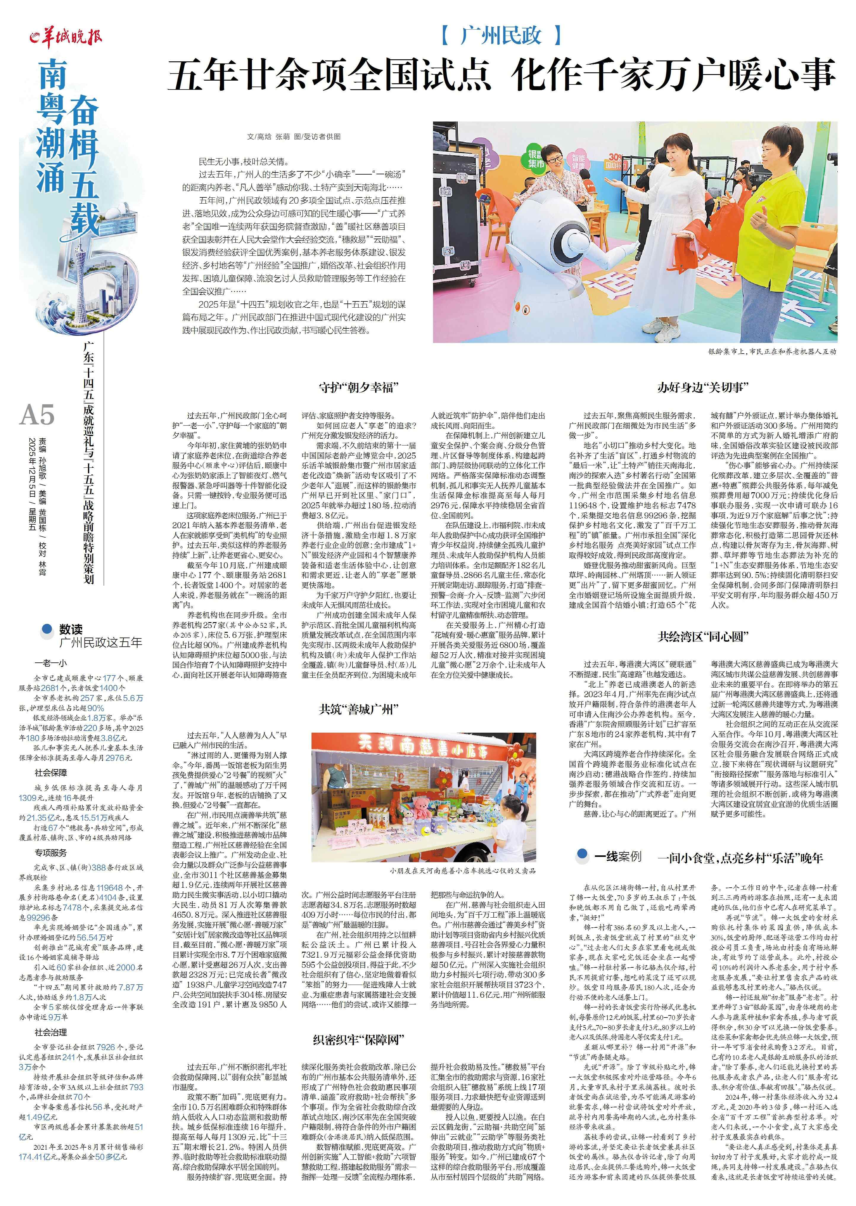 2025年是“十四五”规划收官之年,也是“十五五”规划的谋篇布局之年。广州民政部门在推进中国式现代化建设的广州实践中展现民政作为、作出民政贡献,书写暖心民生答卷。
