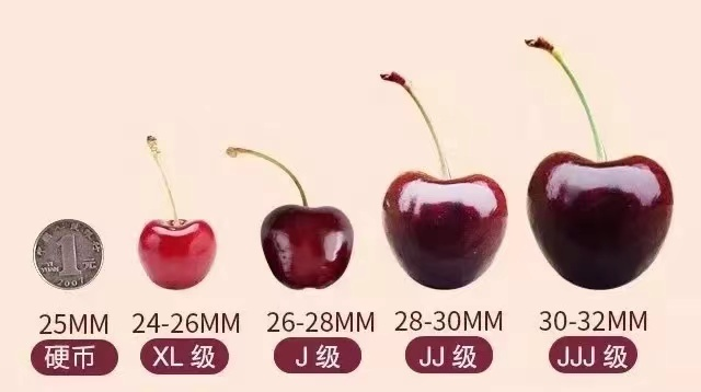 进口的车厘子大致分六个规格,这是分级包装的标准 。