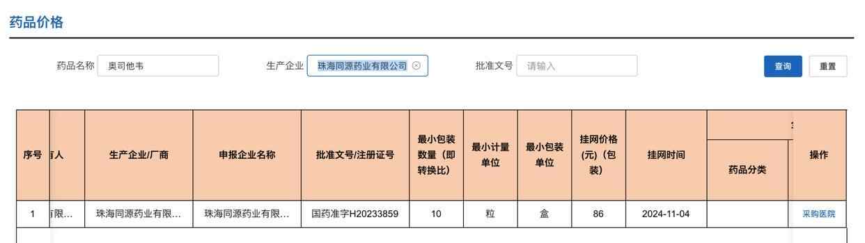记者在各大省份的药品价格查询网址获悉,珠海同源药业有限公司的磷酸奥司他韦胶囊目前挂网价格确实为86元,属于第七批国采未中选药品。