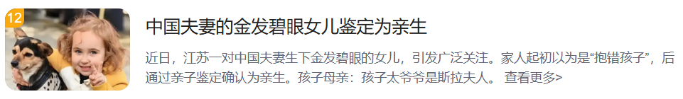 近日,江苏一对中国夫妻生下金发碧眼的女儿,引发广泛关注。家人起初以为是“抱错孩子”,后通过亲子鉴定确认为亲生。