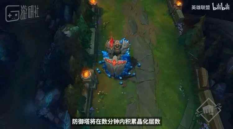 另一个影响巨大的变化,是对推线与推塔策略的全面强化。防御塔将拥有“晶化增生”机制,随着时间积累层数,英雄攻击一次性消耗并打出额外伤害;镀层也将永久存在,甚至内塔、高地塔都会加入镀层体系。