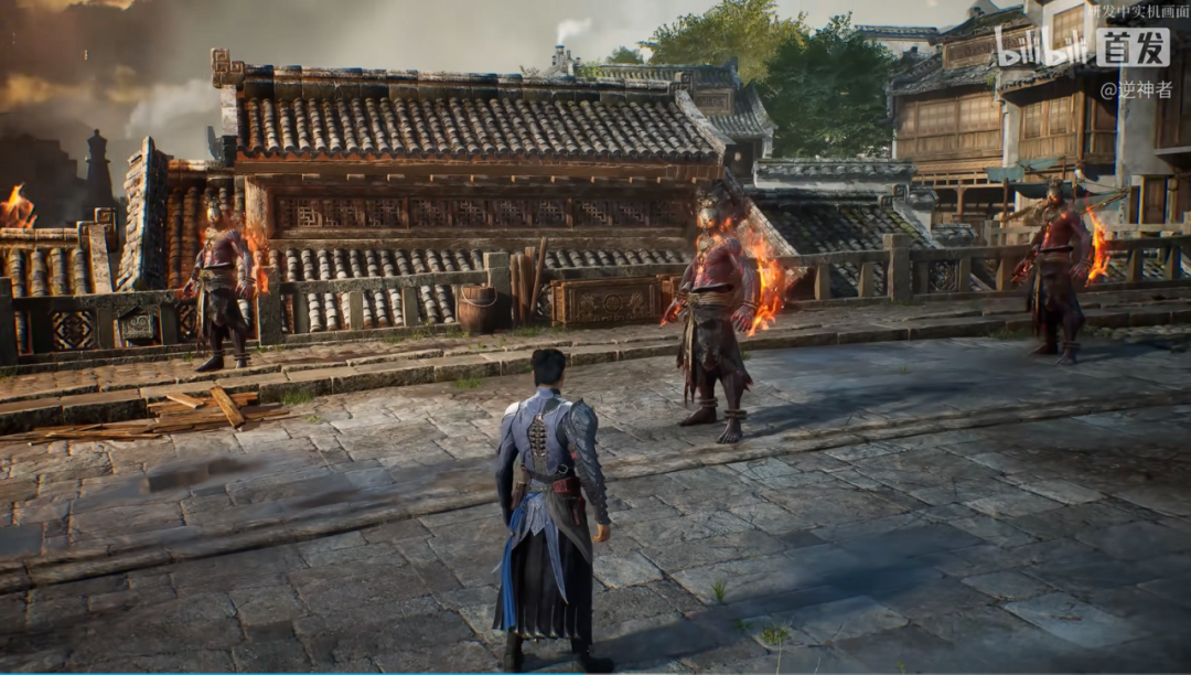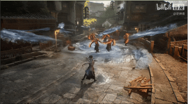 与市面上大部分动作游戏使用一板一眼或者凌厉的招式不同,《逆神者》中的战斗融合了金、木、水、火、土五行元素之力。在实机演示中,《逆神者》向我们展示了火、水、土三种元素的攻击特效。