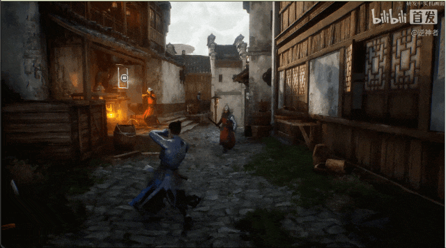 实机演示中的周国都城场景,是非常明显的徽派建筑风格,常见于我国安徽、浙江等地。结合官方背景介绍,周国都城坐落在两江交汇处,江水在此并流入东海,可以很明显的感受到这是借鉴了江南一带的场景设计。
