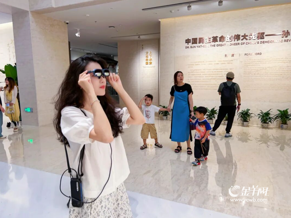升级以后,科技赋能成为核心亮点,为公众打造了沉浸式、互动性极强的观展体验。馆内引入的MR混合现实导览系统,覆盖23个交互点位。游客佩戴智能眼镜,便可在虚实融合的场景中“步移景变”,亲眼见证“革命风潮 一日千丈”的炮火硝烟,甚至聆听1924年孙中山先生演讲的“百年留声”。“革命风潮”沉浸式影片则以孙中山《有志竟成》为蓝本,结合珍贵历史影像,动态再现了从兴中会成立到武昌起义的波澜壮阔。此外,“声入翠亨”声音剧场通过导览耳机与情境营造,让游客在翠亨村的古巷中“一步一戏”,聆听时代回响。双路线设计兼顾快速打卡与深度体验,使游客从历史的“旁观者”转变为“参与者”。