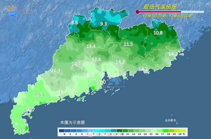 8日,全省大部多云为主。最低气温:粤北、珠三角北部市县9~12℃,粤西、珠三角南部市县16~19℃,其余市县13~15℃。