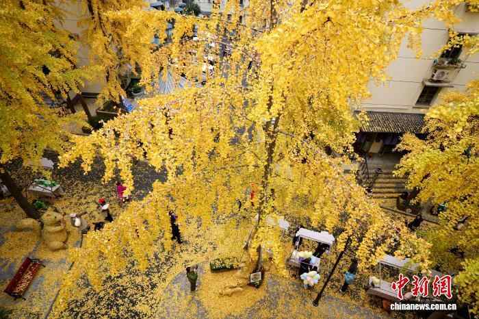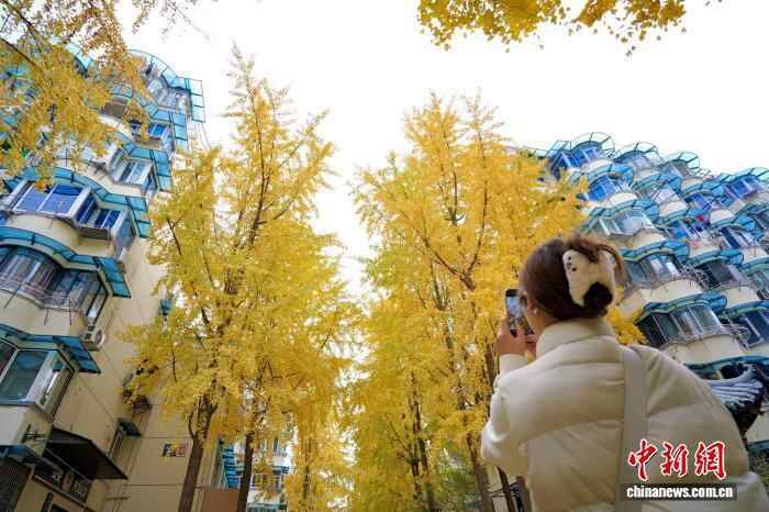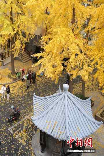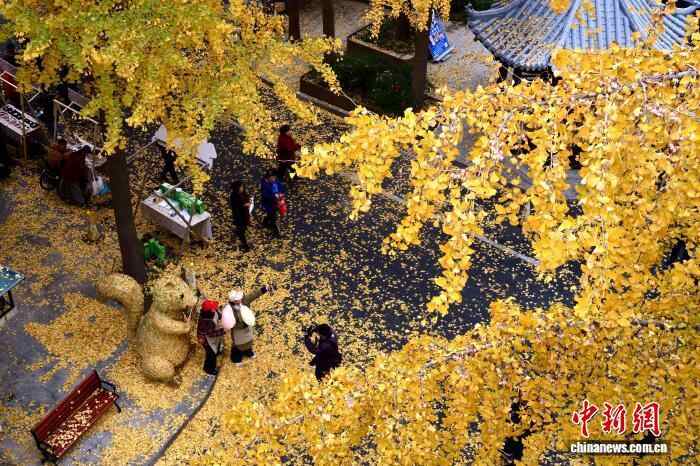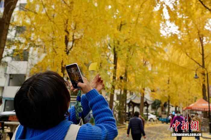 12月3日,金黄色的银杏树吸引市民游客。中新社记者 钱晨菲 摄