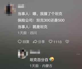 对于小轿车撞上装甲车的这一幕,网友们表示惊讶,也纷纷在评论区整活: