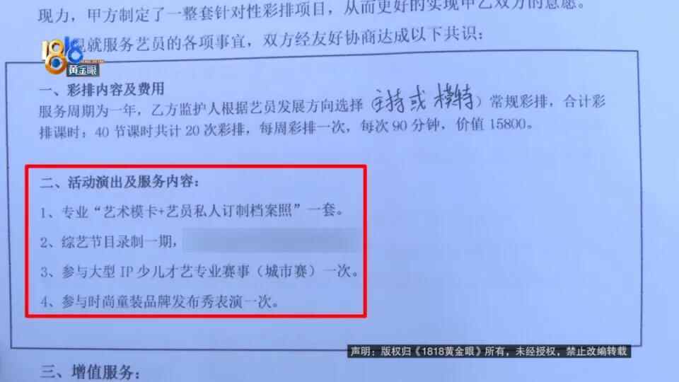 石女士:我们就是录了音,又走了一遍T台,“老师”又看了我儿子的语言表达能力,说非常好。她就说有意跟我们签约,可以以后接童模,接了童模会有回报,还会给我们抽成。